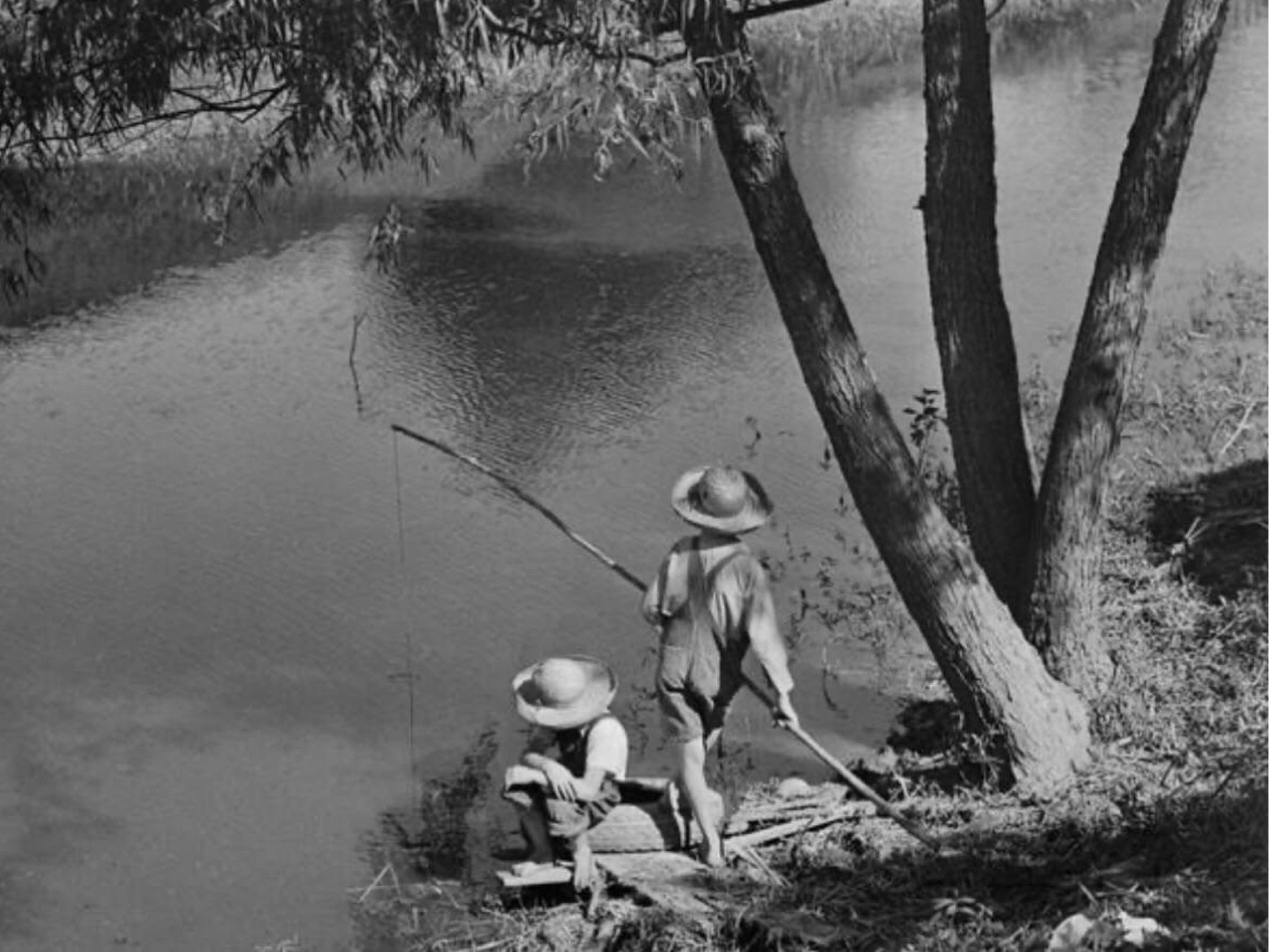 Although the woods had settled the young boy, Jed could still barely contain his excitement and happiness at having escaped the confines of the school in pursuit of one of his favorite pass-times—fishing with his older cousin Han. “I bet I catch more fish than you, Han. Can I have the good pole? Did you remember the worms?” The questions kept coming and Han patiently answered every one while they walked along the banks of the creek until they reached their destination where the creek curved and disappeared into a dense foliage of lush trees, nourished and fed by the running water.