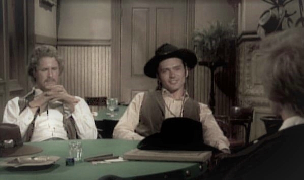 Heyes and Kid quickly exchanged a wary look, silently agreeing it was time to leave. “Some reason you’re set on keepin’ us here?” the Kid asked. Taking a step toward Tim, he forced him to back up, giving Heyes room to lock the door.